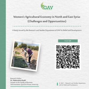 This research, issued by the Research and Studies Department of GAV for Relief and Development, offers a comprehensive analysis of the current state of the women’s agricultural economy in the region. It examines the multiple challenges women face in this sector, ranging from access to financing and markets to social and environmental constraints, while also highlighting the empowerment opportunities that can be leveraged for advancement.